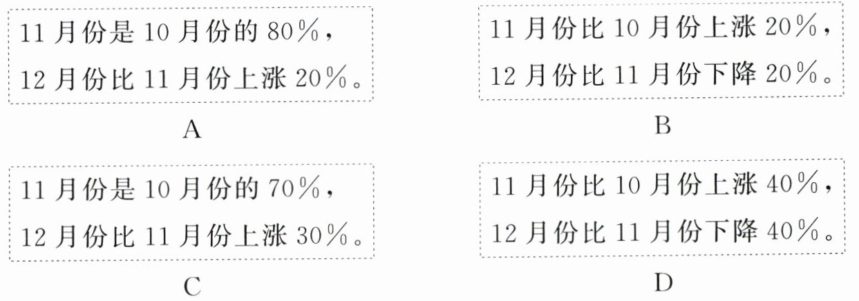 )。A.11月份是10月份的80%,12月份比11月份上涨20%。