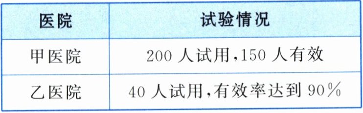 7. 一种抗流感的新药,在某市的两家医院进行了临床试验,试验情况如下。从试验情况可以看出,这种药的有效率是(