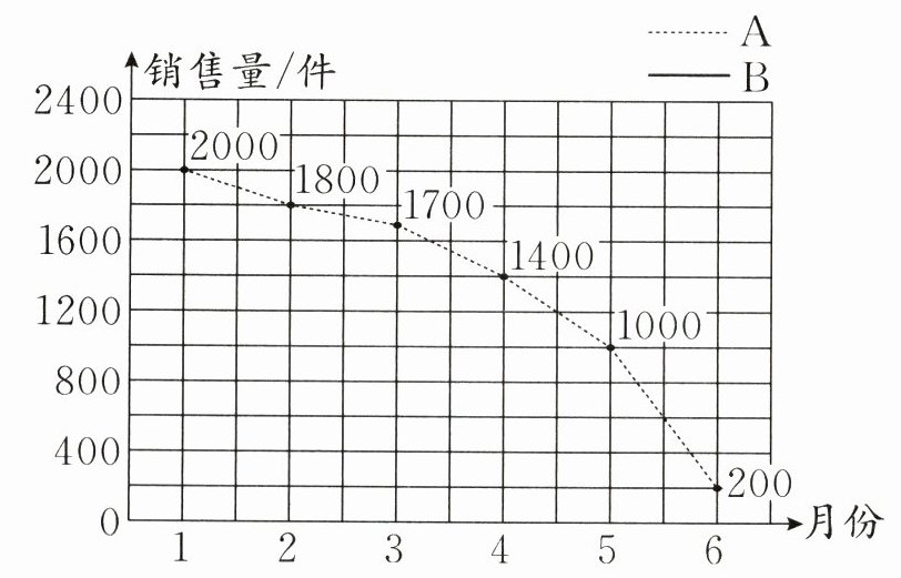 (2)从1月到6月,A的销售量呈( )趋势,B的销售量呈( )趋势。(填“上升”或“下降”)(2分)