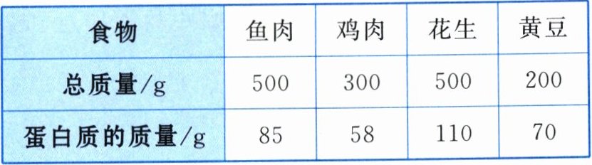 1. 下表中蛋白质的质量占总质量的百分比最高的是(