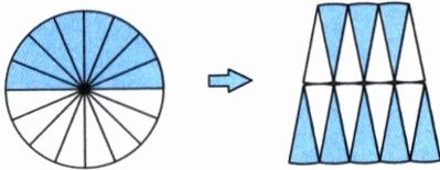 6. 如下图,小冬把一个圆平均分成16份,再拼成一个近似的梯形。若梯形的上底与下底之和是31.4 cm,则圆的面积是(