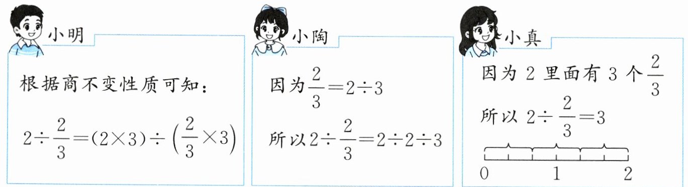 4. 关于计算$2÷\frac{2}{3}$,几位同学分别有以下想法,你认为正确的是(