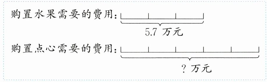 ,每月购置点心需要花费多少万元?请根据线段图在横线上补充文字信息,并根据所填信息解答。