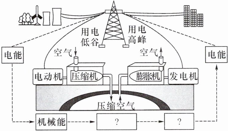 14. 物理学与工程实践 (2024·湖北) 2024 年 4 月 30 日,全球最大的压缩空气储能项目在我国并网发电,工作原理如图。在用电低谷时段利用电网多余电能驱动压缩机压缩空气,使空气