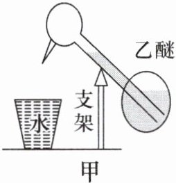 13.中国古代玩具饮水鸟被誉为“爱因斯坦也吃惊的玩具”,如图所示。它的神奇之处在于能不停地点头“喝”水。它的下球中装有极易汽化的乙醚,乙醚吸收空气中的热量汽化,使下球中气压增大将乙醚压入上球,饮水鸟的重心上移“低头喝水”,如图乙;此时上下球连通气压相同,乙醚流回下球,恢复甲图状态,如此反复。则(