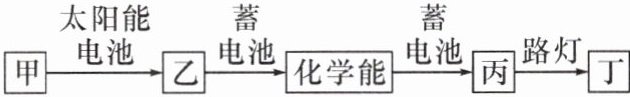 9.教材习题变式 某路灯照明系统的太阳能电池白天将太阳能转化为电能,对蓄电池充电,晚上蓄电池对路灯供电,对如图方框中能量形式判断正确的是(