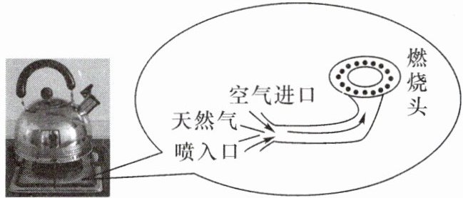 1.(2024·广东广州节选)如图是燃气灶烧水的情境和该燃气灶灶头的示意图。壶中装有密度为$1.0× 10^{3}\ kg/m^{3}$、质量为2 kg的水,则壶中水的体积为$m^{3}$。根据$Q=Vq$,若天然气的热值$q=4.2× 10^{7}\ J/m^{3}$,完全燃烧$V=1.0× 10^{-2}\ m^{3}$的天然气放出热量为J,其中$1.68× 10^{5}\ J$的热量被水吸收,已知水未沸腾,比热容为$4.2× 10^{3}\ J/(kg·{\hspace{0pt}}^{\circ }C)$,则水的温度升高了${\hspace{0pt}}^{\circ }C$。