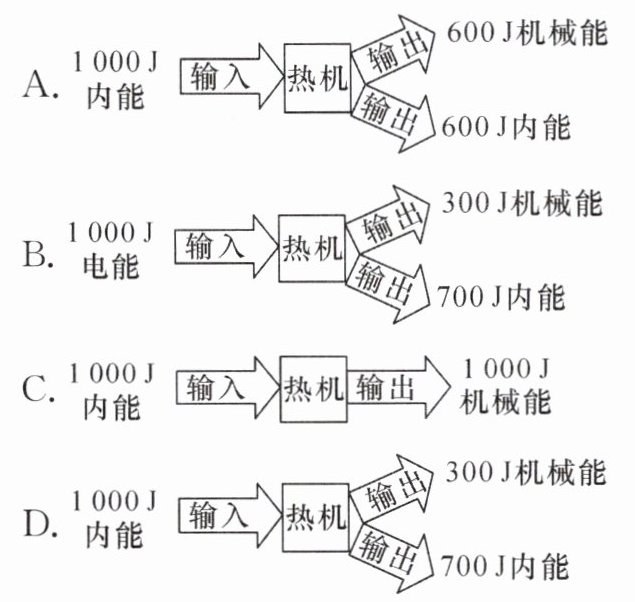 2. 下列选项可能符合汽车等热机能量流向的是()