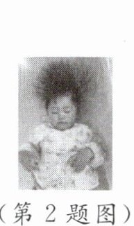 2.如图,小朋友从滑梯滑下后,出现“怒发冲冠”的情景。产生这种现象的原因是小朋友从滑梯滑下时发生了