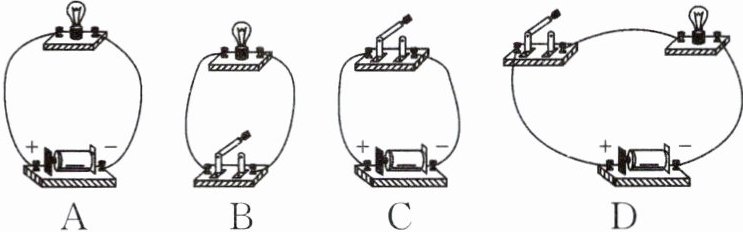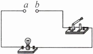 7. 如图所示的电路,用导线把一个小灯泡和开关连接起来,要使小灯泡发光,除在a、b之间接入