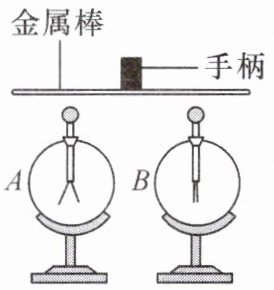 ;人持手柄,让金属棒连接A和B两个验电器的金属球,连接瞬间电流的方向由B到A,则:金属棒的手柄是绝缘体