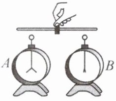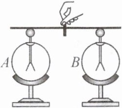 [变式题2]如图所示有两个相同的验电器,其中A带负电、B不带电。用带有绝缘柄的金属棒把A和B连接起来,观察到A、B金属箔张角变化情况为