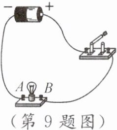 9. 如图,将灯泡与电池相接,闭合开关后,灯泡发光。通过灯泡的电流方向是