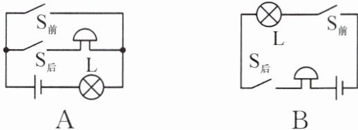 2. 在物流仓库值班室中,当前门来人时灯亮,后门来人时电铃响。下列电路设计符合要求的是 (