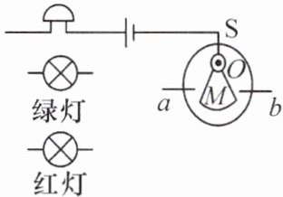 11. 某船上装有平衡警示电路,其中S为重力开关,金属片M可绕O点自由转动。当船水平时,M在a、b中间;当船左倾到一定程度时,绿灯亮、电铃响;当船右倾到一定程度时,红灯亮、电铃响。请按要求完成电路图。