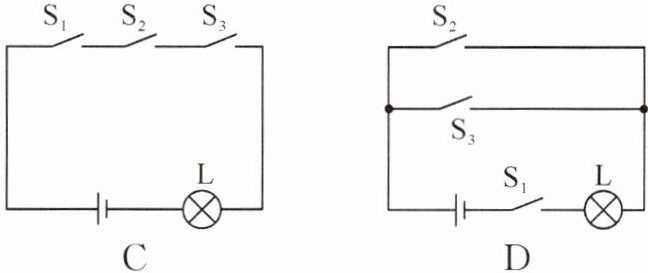 6. 物理学与社会发展 2024年9月10日,某品牌发布了全球首款三折叠屏手机,为手机市场注入了新鲜血液。该手机可通过指纹开关S₁、密码开关S₂、人脸识别开关S₃中的任何一种方式成功解锁。若用灯泡L发光模拟手机解锁成功,则符合要求的模拟电路是 (