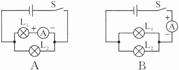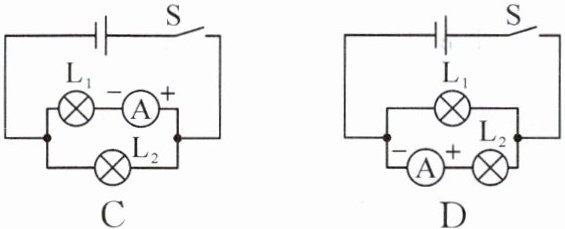 5. 如图所示四个电路图中,能正确测量通过$L_{1}$电流的电路是 (