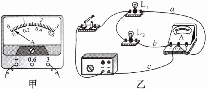 (2)图乙实验中,若闭合开关后,灯$L_{1}$发生了断路,则电流表 有