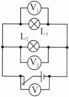 5. 教材习题变式 如图所示电路,电压表$V_{2}$的示数为6 V。下列说法中正确的是 ( )