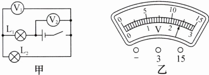 )A.L₁短路B.L₂短路C.L₁断路D.电压表断路9·如图甲所示电路,当闭合开关后,两个电压表指针偏转均如图乙所示,则L₁、L₂两端的电压分别为9.6