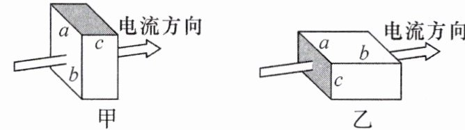 10. 核心素养 科学推理 如图所示,有一个长方体金属电阻,其材料分布均匀,边长分别为a、b、c,且a>b>c。电流分别沿图中的甲、乙两种方式流过金属电阻时,其中电阻阻值较大的是
