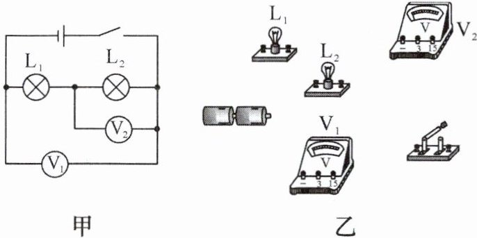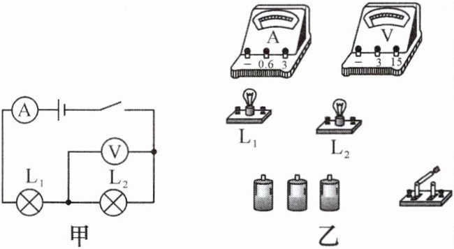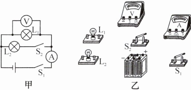 8. 按照如图甲所示的电路图,将图乙中的实物元件连接起来。