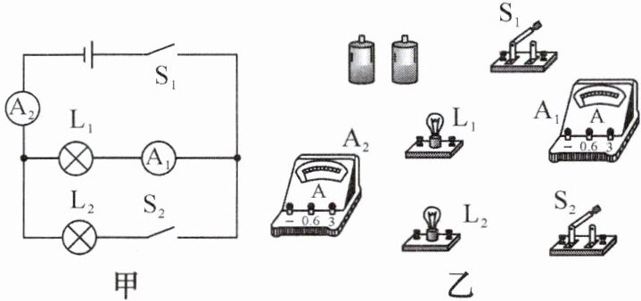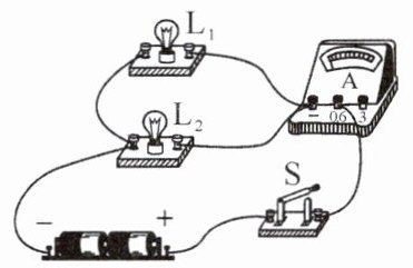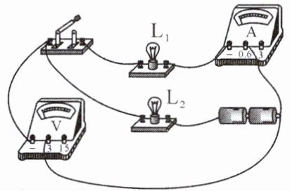 3. 电流表 $A_2$ 的负端分别连接至灯泡 $L_1$ 和 $L_2$ 的一端。