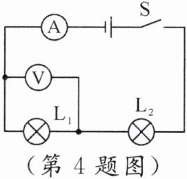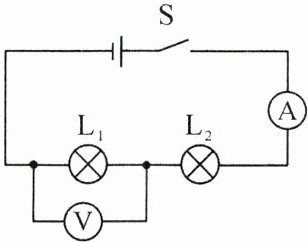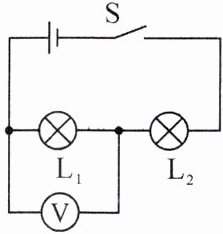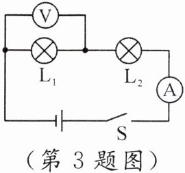 3. 如图所示,开关S闭合,灯泡L₁不发光、L₂发光,电流表指针有明显偏转,而电压表指针无偏转,该电路故障可能是(