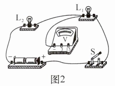(2)实验电路如图2所示,请用笔画线代替导线将电路连接完整,使电压表测量小灯泡$L_{1}$两端的电压。