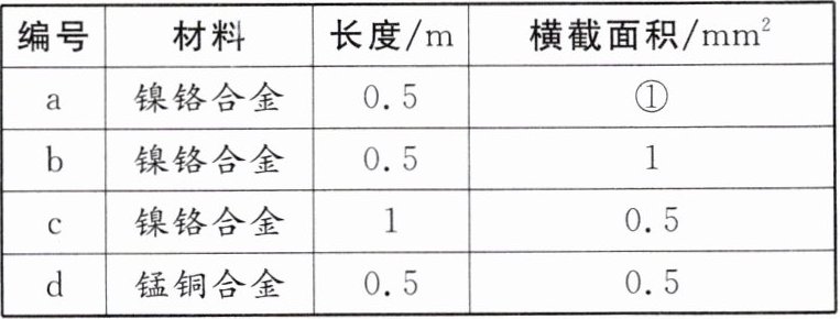 (1)小明找到了a、b、c、d四个电阻丝,为了能够完成所有探究,表中①处填充的内容是