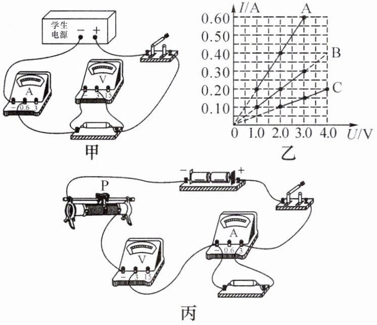 (3) 导体 A B C 电压U/V 2.0 2.0 2.0 电流I/A 0.40 0.20 0.10