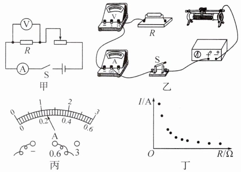 A。(3)在如图丁所示坐标系中已经描出所有实验数据对应的点,请绘出图像,分析并得出结论: 。