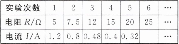 ,实验数据如表所示,其中第6次实验中电流表示数如图丙所示,其读数为0.24