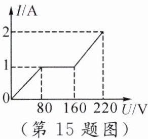 15. 小明同学发现了一个废弃的电子元器件,他想了解它的一些特性,进行了一系列实验,收集了一些信息。他根据收集的信息,作出了该元器件的电流随电压的变化图像,如图所示。由图像可知,当U=40 V时,元器件的电阻为