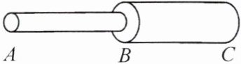 10. 如图所示,两段材料和长度相同但粗细不同的金属导体AB与BC连在一起,将AC两端接入电路中,则通过AB的电流$I_{AB}$、加在它两端的电压$U_{AB}$和通过BC的电流$I_{BC}$、加在它两端的电压$U_{BC}$的大小关系是(
