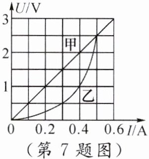 7. 图示是电阻器甲和乙的U-I图像,小明对图像信息作出的判断,正确的是 (