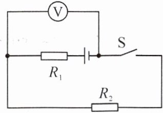 3. 如图所示,开关S断开时,电压表示数为12 V;开关S闭合时,电压表示数为3 V。已知$R_{1}$阻值为30 Ω,则开关S闭合时,$R_{1}$两端电压为
