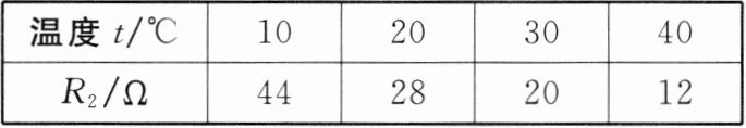 (3)根据串联电路的电流规律和欧姆定律得,此时热敏电阻R₂的阻值:R₂=U₂/I₂=U₂/I₁=4 V/0.2 A=20 Ω,根据表格可知,此时鱼缸内水的温度为30 ℃。