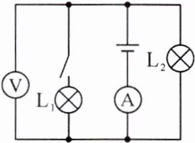 10. 三个定值电阻串联后接在电压恒定的电路两端,其阻值$R_{1}=5\ \Omega$,$R_{2}=10\ \Omega$,$R_{3}=15\ \Omega$。某同学将一只电流表接在$R_{2}$的两端,如图所示,发现其示数为1.5 A。若将电流表的位置改接一只电压表,则电压表的示数为