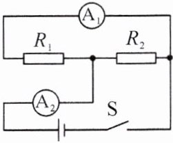 [变式题]如图所示,$R_1:R_2=3:1$,当开关 S 闭合后,电流表 $A_1$ 与 $A_2$ 的示数之比为(