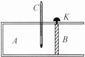 13. 核心素养 科学推理 如图所示,在气缸A中密封有压缩空气,B是被销钉K锁住的活塞,C是一支温度计。若活塞与气缸壁间没有摩擦,当把销钉K拔出后,请你写出可能看到的一个现象,并进行解释。