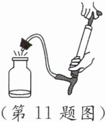11. 教材实验变式 如图所示,在用塞子密封的瓶子内装有少量的水,用打气筒往瓶内打气,瓶塞跳起来之前,瓶内空气的内能