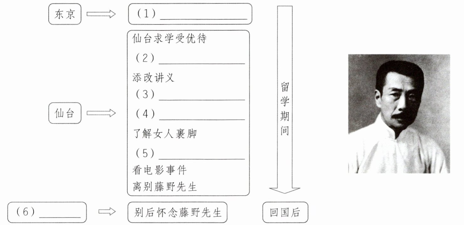 (1)离开东京之缘由 (2)初识藤野先生 (3)藤野先生纠正解剖图 (4)关心解剖实习 (5)匿名信事件 (6)北京