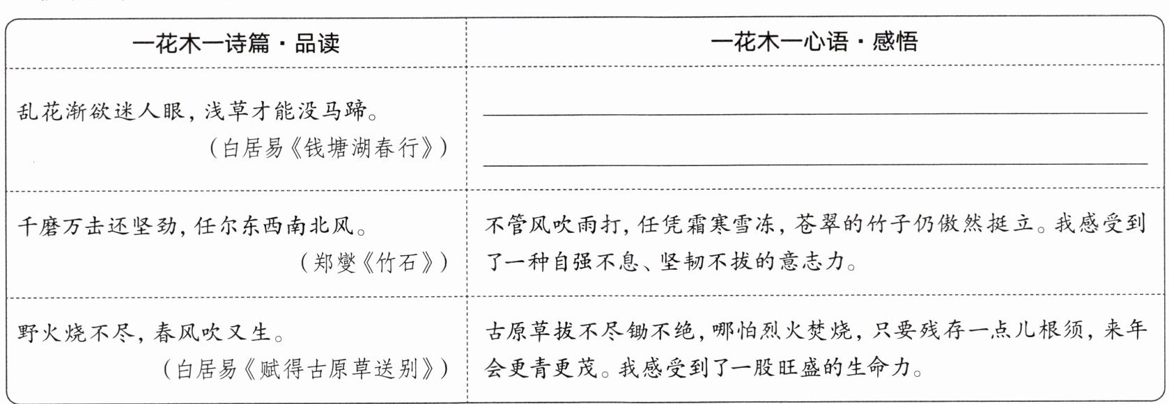 8. 2025《例析与指导》新题型 高阶思维 漫步古诗苑,你们小组准备编纂一本《人间花木》集,请按提示完成下面的表格。(2 分)