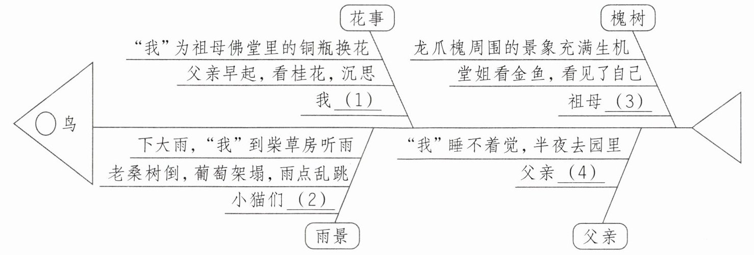 5. 梳理文章脉络 本文由故乡的鸟联想到园子里的许多人和事。请根据下图,在横线处填上相关内容。(4 分)