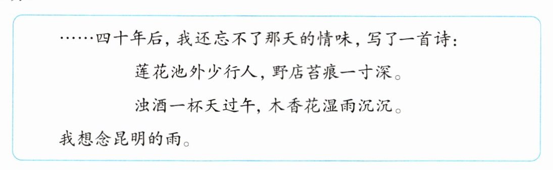 8. 回归教材 感悟文章情感 请你品读本文与下面《昆明的雨》的结尾,分析两文结尾分别表达了作者怎样的情感。(4 分)