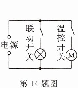 14. 如图所示是家用电冰箱电路图。冰箱压缩机由温控开关自动控制,冷藏室照明灯由冰箱门联动开关控制,冰箱门关闭后,联动开关处于