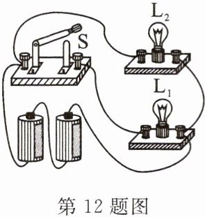 12. 如图所示,闭合开关S,电灯$L_1$和$L_2$的连接方式是
