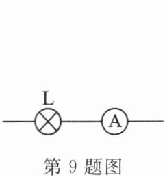 9. 如图所示,用电流表测量灯L的电流时,电流表所显示的数值实际上是通过它本身的电流值,我们将电流表所显示的数值当作通过灯L的电流值,这是因为