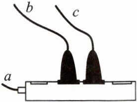 6. 如图的插线板中,a接电源,b接台灯,c接电风扇,两个用电器均正常工作时,a、b、c中的电流分别用Iₐ、Iᵦ、Ic表示,它们之间的关系是(